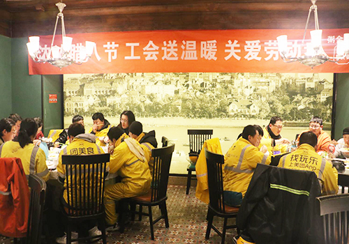 據(jù)了解,本次活動共向100余名環(huán)衛(wèi)工人、快遞員等新就業(yè)形態(tài)勞動者送上了臘八粥,此外還準(zhǔn)備了包子和熱菜。