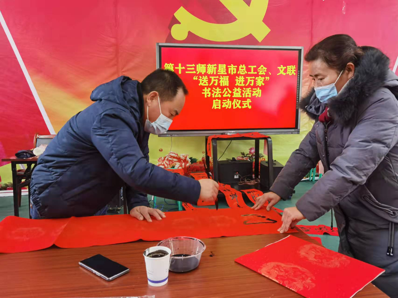 1月11日,新疆生產(chǎn)建設(shè)兵團十三師新星市總工會聯(lián)合師市文聯(lián)開展的“送萬福、進萬家”書法公益活動正式啟動。
