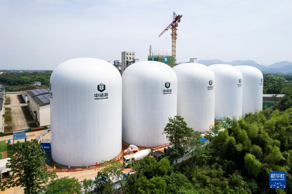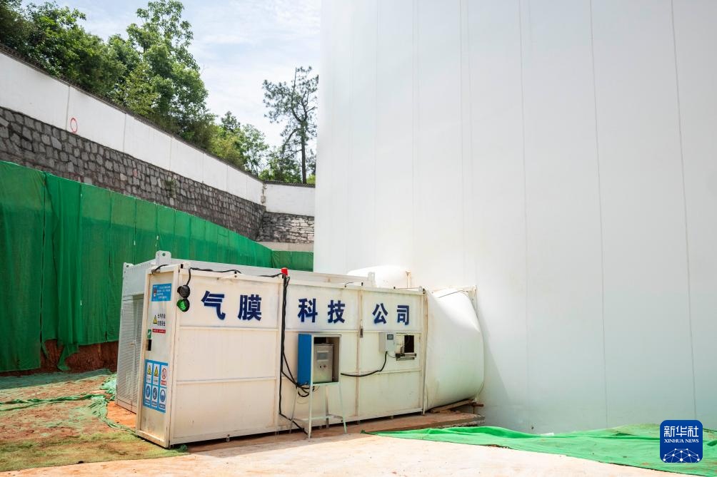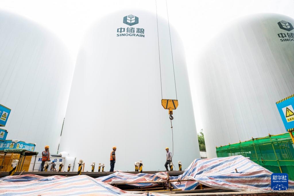這是5月6日在中儲糧長沙直屬庫拍攝的氣膜糧倉建設(shè)施工現(xiàn)場。新華社記者 陳思汗 攝