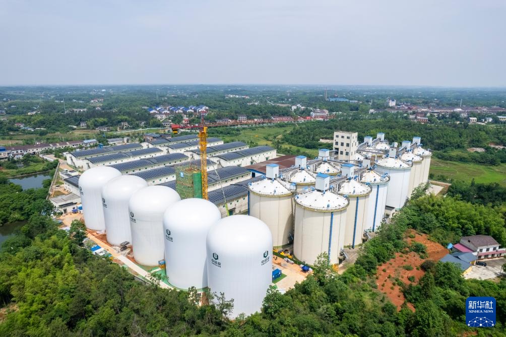 這是5月6日在中儲糧長沙直屬庫拍攝的氣膜糧倉建設(shè)施工現(xiàn)場(無人機(jī)照片)。新華社記者 陳思汗 攝