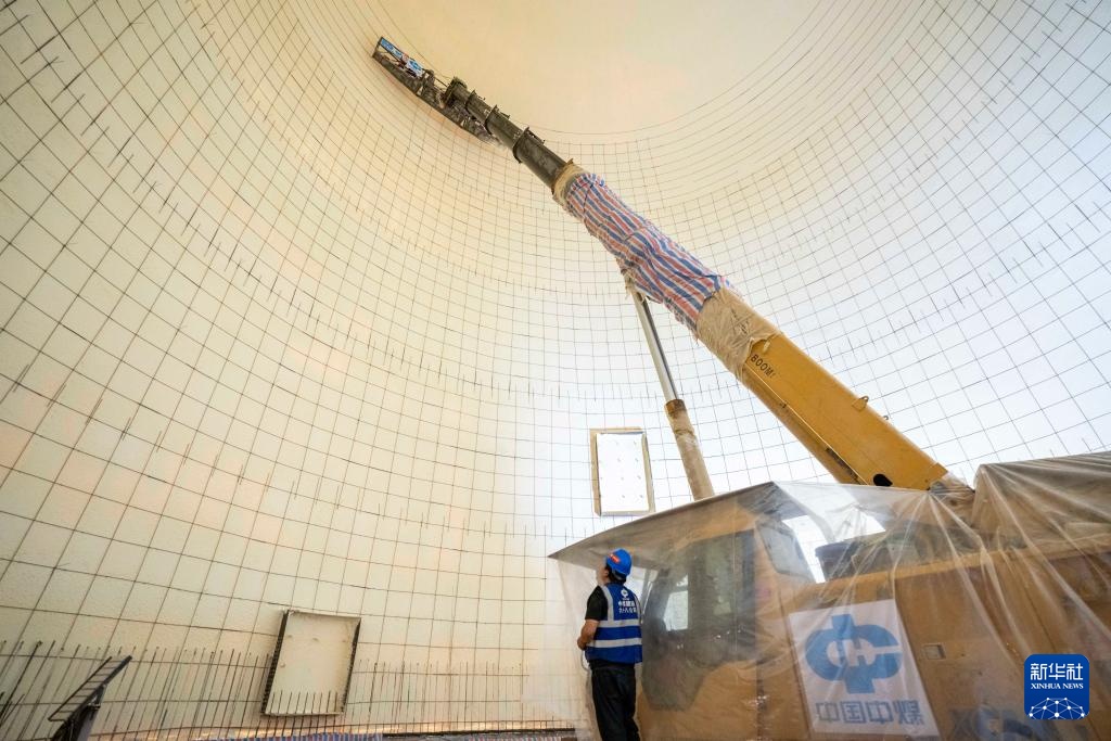 5月6日,在中儲糧長沙直屬庫,工人在氣膜糧倉內(nèi)部做結(jié)構(gòu)層施工。新華社記者 陳思汗 攝