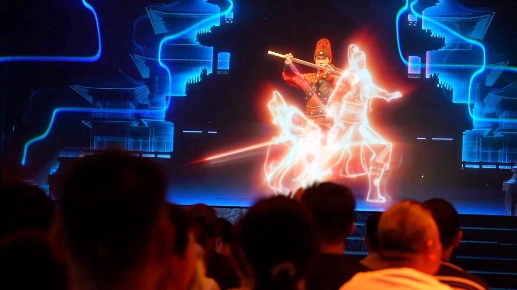 在開封府景區(qū),大型全息沉浸互動劇目《閘口盤車案》,依托全息立體成像、裸眼3D視效和虛擬現(xiàn)實交互技術(shù),游客化身“大宋官員”與“包公”互動,抽絲剝繭破解謎案。