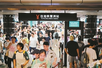 假日里的廣州地鐵十分忙碌。廣州日?qǐng)?bào)全媒體記者駱昌威 通訊員袁彥昌攝
