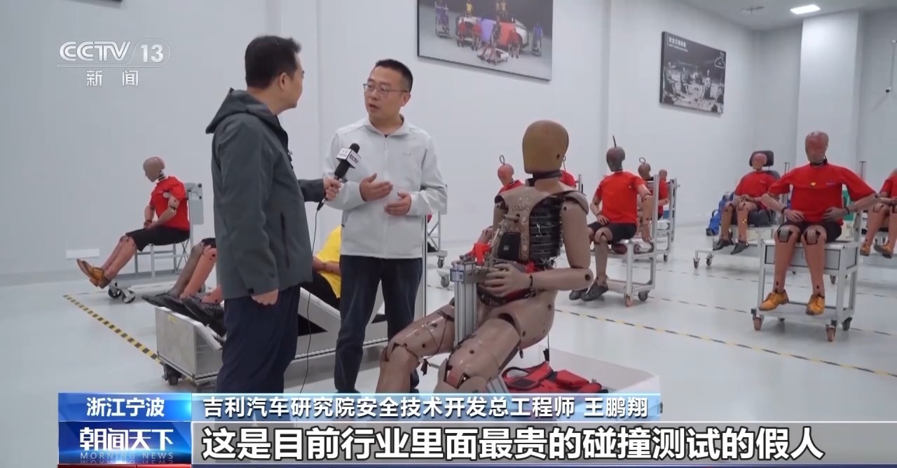 吉利汽車研究院安全技術(shù)開發(fā)總工程師 王鵬翔:比如肋骨的材料外面是鋼的,里邊是石墨的,這種材料以及它的連接工藝有很多技術(shù)門檻,都已經(jīng)實現(xiàn)自主創(chuàng)新突破了。