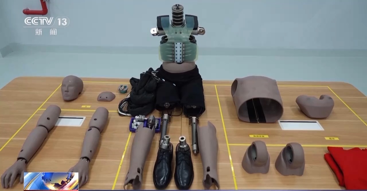 這個假人分拆臺展示了假人所有的部件,從大腿、軀干,到頭部,這些部件均已實現(xiàn)了完全自主設(shè)計與制造。