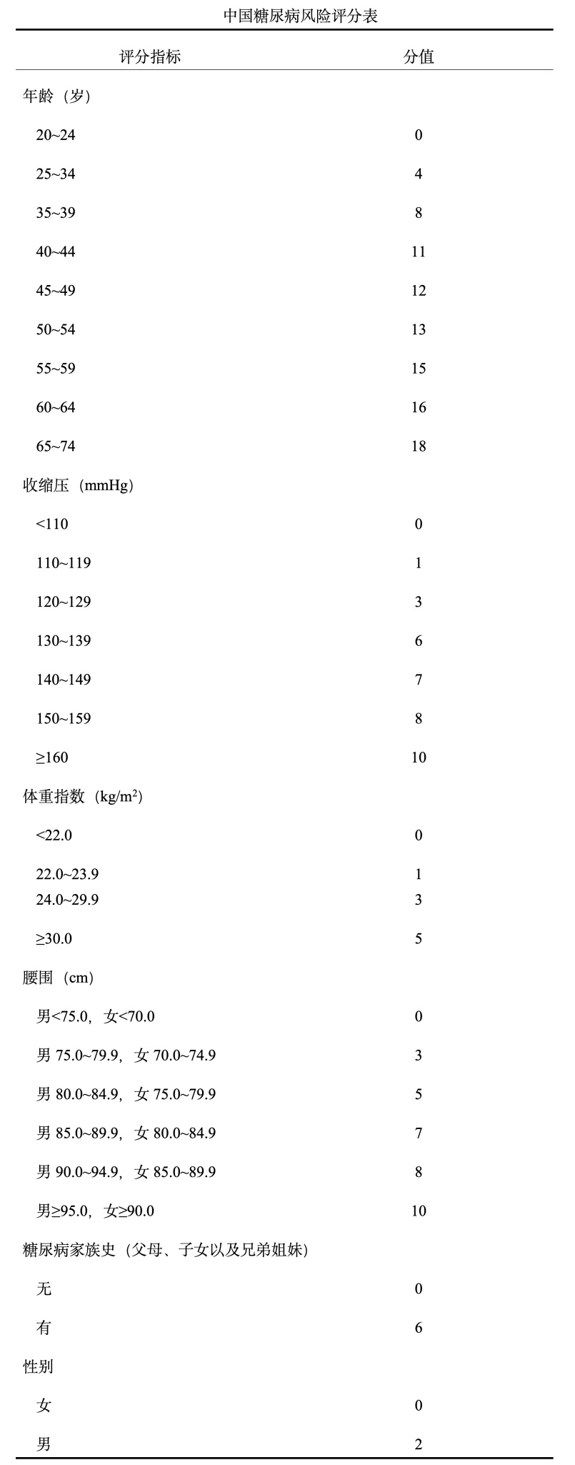 (十七)中國糖尿病風(fēng)險(xiǎn)評(píng)分總分≥25分。
