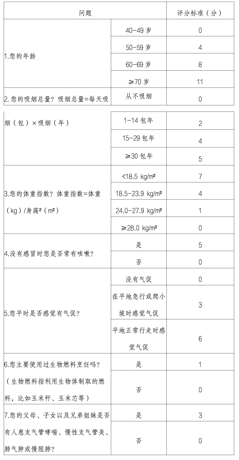 以下各項(xiàng)累計(jì)評(píng)分≥16分者,為COPD高風(fēng)險(xiǎn)人群。