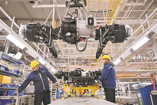 12月12日,在河南省商丘市豫商經(jīng)濟(jì)技術(shù)開(kāi)發(fā)區(qū)一家新能源汽車企業(yè),工人在新能源輕卡車生產(chǎn)線上趕制產(chǎn)品訂單。