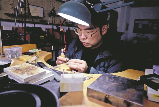 “金屬會氧化,但匠心不會褪色?!睆墓そ持拥礁咝=處?,包家鳴在方寸之間守護(hù)匠心,讓傳統(tǒng)手藝在新時代生根發(fā)芽。本報記者 王羨茹 攝