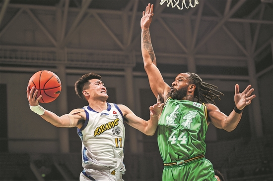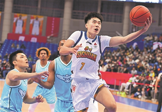 四川隊(duì)球員段睿騏(右一)在比賽中上籃。新華社記者 李紫恒 攝